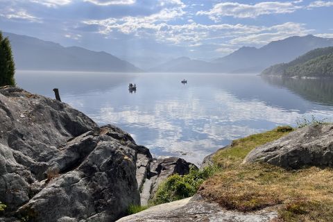 Noen dager da været er fint vil det bli Strandkafè på Vannes NaturCamp. Da er det bare å ta turen gjennom skogen eller komme med båt. In